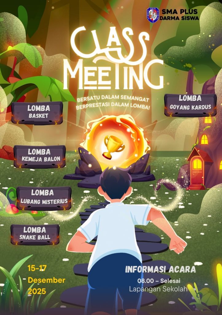Waru, 19 desember 2025 – Class meeting merupakan salah satu kegiatan yang paling dinantikan oleh peserta didik setelah menyelesaikan Penilaian Akhir Semester (PAS). Kegiatan ini menjadi momen pelepas penat sekaligus sarana untuk mempererat kebersamaan antar siswa dan guru. SMA “Plus Darma Siswa” menyelenggarakan class meeting sebagai bentuk upaya menciptakan suasana sekolah yang menyenangkan, seimbang, dan penuh semangat kebersamaan.